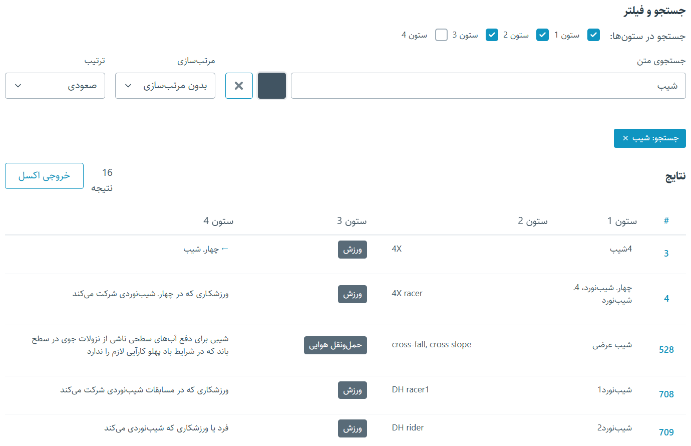 در تصویر سوم که یه فایل اکسل دیگهایه، ستونهام اسم ندارن. شیب رو جستوجو کردم و نتیجه اینطوری شده. عرض ستونهای این خوبه.
