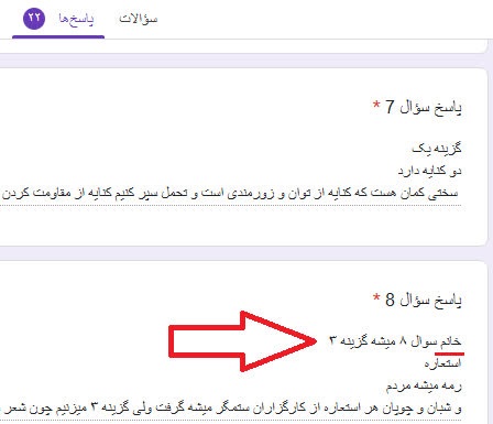 به میزان خانوم گفتناشون دقت میکنید دیگه؟ سر کلاسم همینن. خانوم خانوم گفتنشون رو مخه. خیلی دلم میخواد بگم انقدر خانوم نگن، ولی عادت کردن. تو پاسخنامۀ آزمونی که تو گوگل فرم گرفتم هم خانوم جواب فلان میشه نوشتن.