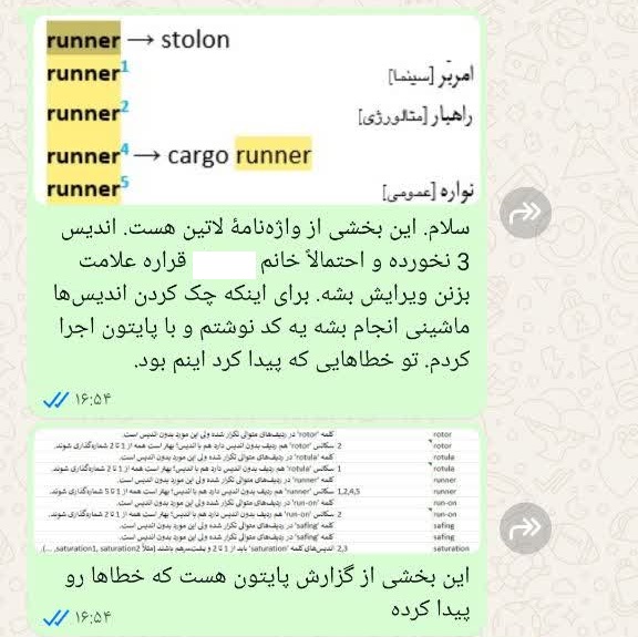 فیالواقع عدهای دارن بهصورت دستی و چشمی واژهنامه رو ویرایش میکنن. یه حرکت خفن زدم روی اندیسهای اشتباه که همهشون باهم اصلاح بشن و کار، سریع و بدون خطا پیش بره. ولی کیه که قدر بدونه.