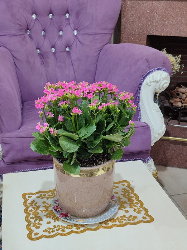 اسمش کالانکوئه هست. شبیه گل قاشقیه، ولی اون نیست. اردیبهشت امسال روز معلم هم از اینا بهمون دادن. چون از مدرسه مستقیم میرم فرهنگستان، گذاشتم همونجا روی میزم. چند روز بعدم گلاش خشک شد. بعدش آوردم خونه. بعد که جنگ شد با خودم بردم تبریز. الان اون گل روز معلم، تو تبریزه و نمیدونم دوباره گل درآورده یا نه. سه ماه گل داره سه ماه گل نداره.
